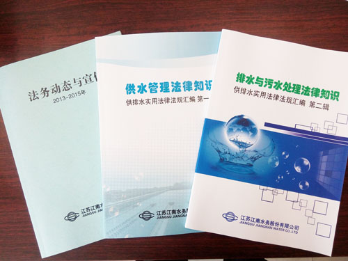 自編普法書籍,饋送一線員工。日前,公司法務(wù)部結(jié)合法律實(shí)務(wù),著眼為各部門一線員工提供法律幫助,編撰了《供水管理法律知識(shí)》、《排水及污水處理法律知識(shí)》、《法務(wù)動(dòng)態(tài)與宣傳》等法律匯編書籍,首印300冊(cè)陸續(xù)分發(fā)給公司一線部門。這是公司開展“六五”普法,推進(jìn)依法治企的又一有力舉措。