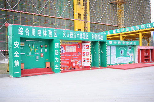 公司新建業務用房設有安全教育體驗區,包括綜合用電體驗區、滅火器演示體驗區、安全帽撞擊體驗區及安全教育宣講臺等功能區,從視覺、聽覺、觸覺方面讓施工者提高自我安全意識,提升突發事件應急處置能力,確保安全施工。