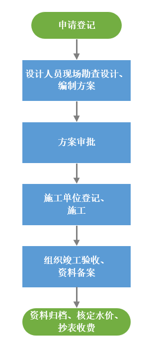 勘察后,用戶所住地改造水表影響道板,柏油路,小區主干道的,由用戶自行到相關部門(轄區交警大隊、城管局等)辦理刨掘、占用路面手續。