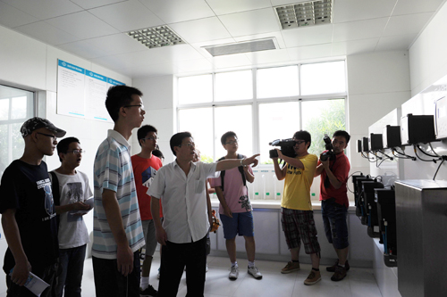 才上午8點,室外就已是烈日炎炎,悶熱難耐,但卻絲毫沒有減弱這些準(zhǔn)大學(xué)生們的興致,第一次親近水廠,學(xué)子們對這里的一切都充滿了好奇。