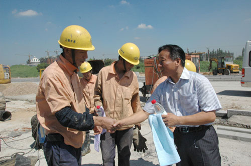 7月27日,市總工會副主席卞正環(huán)一行,來到延陵東路供水管線建設(shè)工地,走訪慰問在高溫下的一線施工人員,向他們發(fā)放了礦泉水、毛巾等消暑用品。卞正環(huán)對冒著酷暑、堅守崗位的水務(wù)人表示了由衷的敬意,同時要求注意調(diào)整作息時間,做好個人防護和防暑降溫工作,確保人身、施工、供水安全。