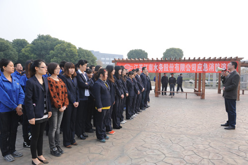 根據公司年度應急預案演練的計劃, 11月19日,公司在肖山水廠組織開展了一次消防應急演練。總經理沙建新、副總經理高立、相關部門負責人及50多名員工參加演練活動。