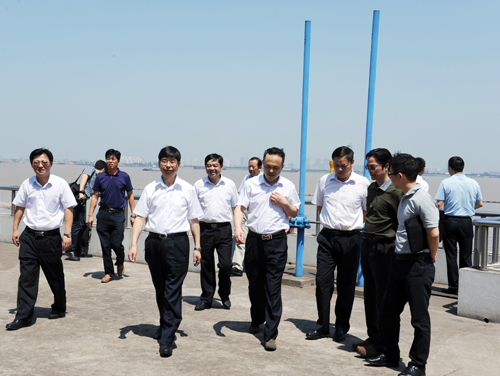 高溫酷暑,深入一線。8月7日上午,江陰市委副書記、市長沈建,副市長封曉春一行來到公司調(diào)研,實(shí)地視察水廠運(yùn)行狀況,走訪慰問一線水務(wù)員工,悉心聽取夏季高峰安全保供工作匯報(bào),詳細(xì)了解水務(wù)企業(yè)發(fā)展情況,現(xiàn)場解決企業(yè)發(fā)展中的一些難題。市政府辦、經(jīng)信委、公用局、水利局、環(huán)保局、氣象局領(lǐng)導(dǎo),公司董事長龔國賢、總經(jīng)理沙建新、常務(wù)副總經(jīng)理王建林等陪同調(diào)研。