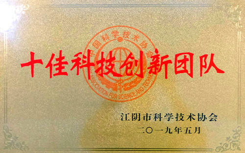 公司榮獲江陰市“十佳科技創新團隊”稱號
