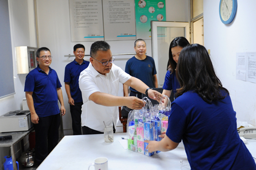 8月12日,市總工會(huì)副主席趙云飛一行來到公司小灣水廠慰問高溫下堅(jiān)守崗位的一線職工,送上一份清涼,道一聲辛苦。公司工會(huì)主席周益獻(xiàn)陪同慰問。