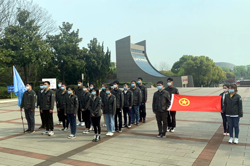 28位團員青年來到渡江戰役烈士陵園,在烈士紀念碑前列隊默哀,重溫入團誓詞,深切緬懷革命先烈的豐功偉績,表達對他們的敬仰之心,告慰烈士們的在天之靈。